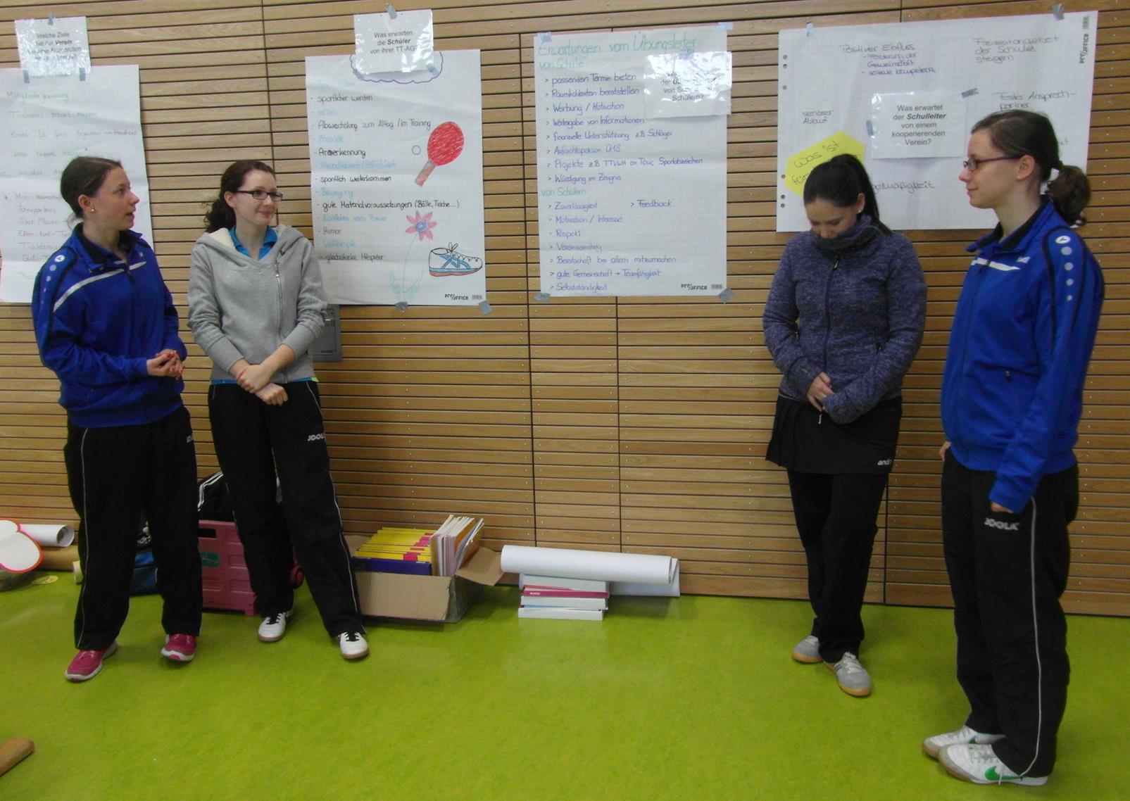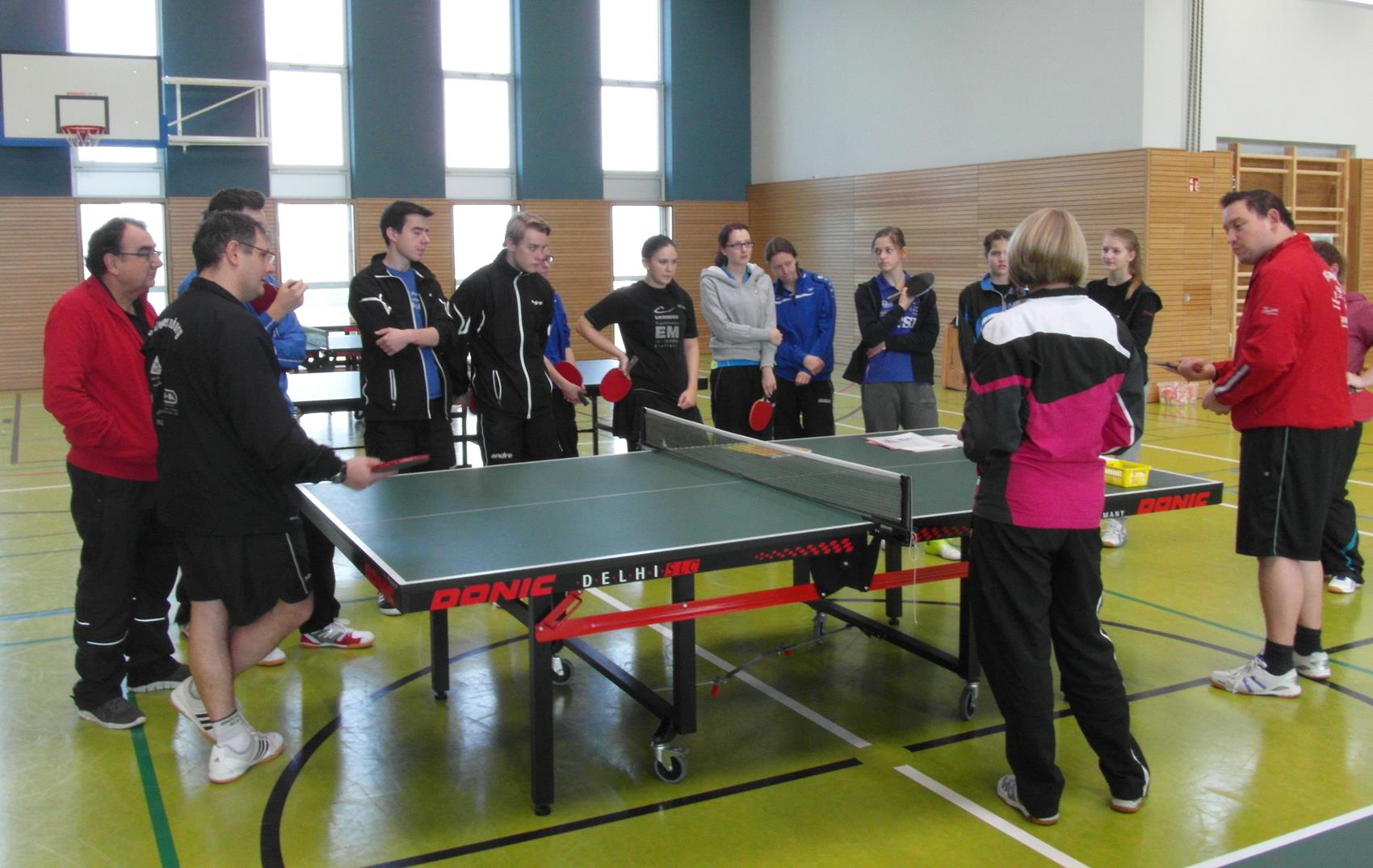 Der abwechslungsreiche Unterricht beinhaltete vereinsnahe Theorieteile, wie Kooperationen mit Schule und Verein, soziale Kompetenzen als Trainer oder TT-Basics, die im Anfängertraining unumgänglich sind. In vielen praxisbezogenen bewegungsfreudigen Übungen konnten die Teilnehmer ihre eigenen und neu erworbenen Kenntnisse ausprobieren und sich in die Abläufe kreativ einbringen.
