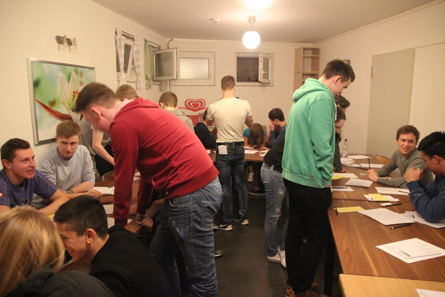 Warum sich Profis bei einem TV-Interview ständig an die Nase greifen, wie man einen selbstbewussten Eindruck bei einer Rede macht und warum gute Rhetorik kein Hexenwerk ist, erklärte der Redeprofi Franz Baumgarten von der Coachingagentur Improvit. „Sport mit Courage“ hieß das zweite Theorieseminar von Ulf Kahle-Siegel und Pascal Poethke von der Sportjugend Brandenburg. In zahlreichen kleinen Rollenspielen versetzten die dreißig Teilnehmer/innen sich in andere Rollen, z.B. in die eines Flüchtlings.