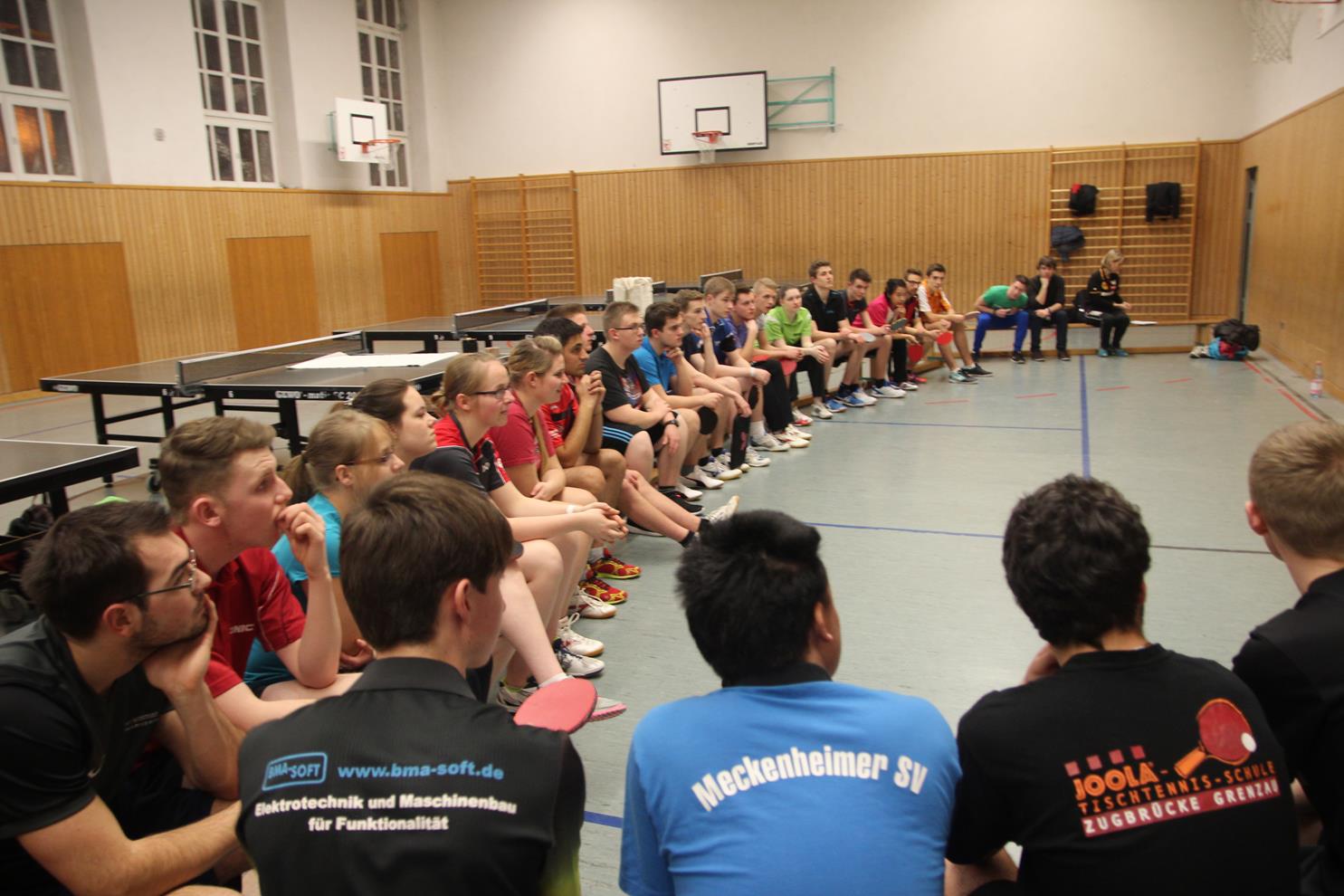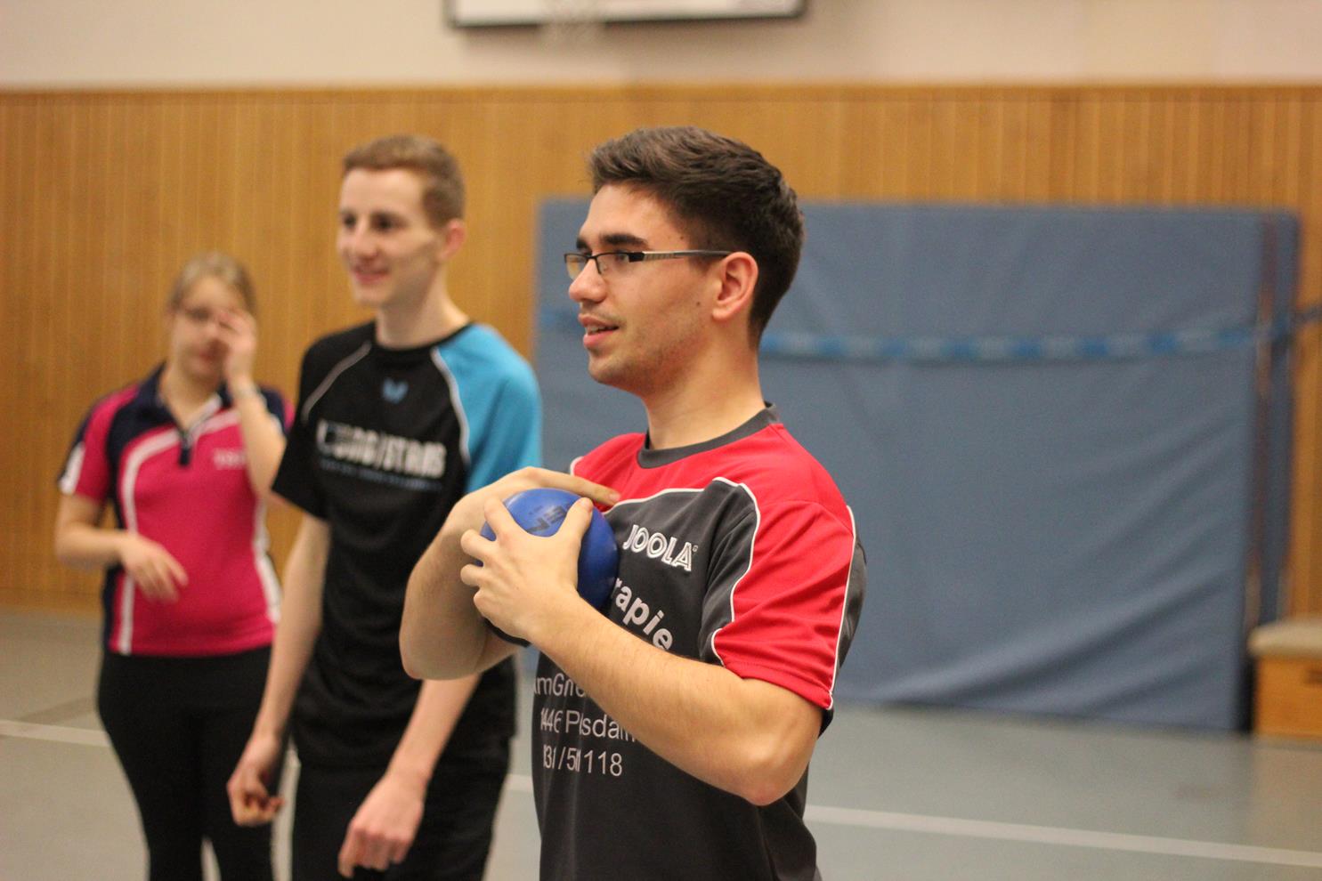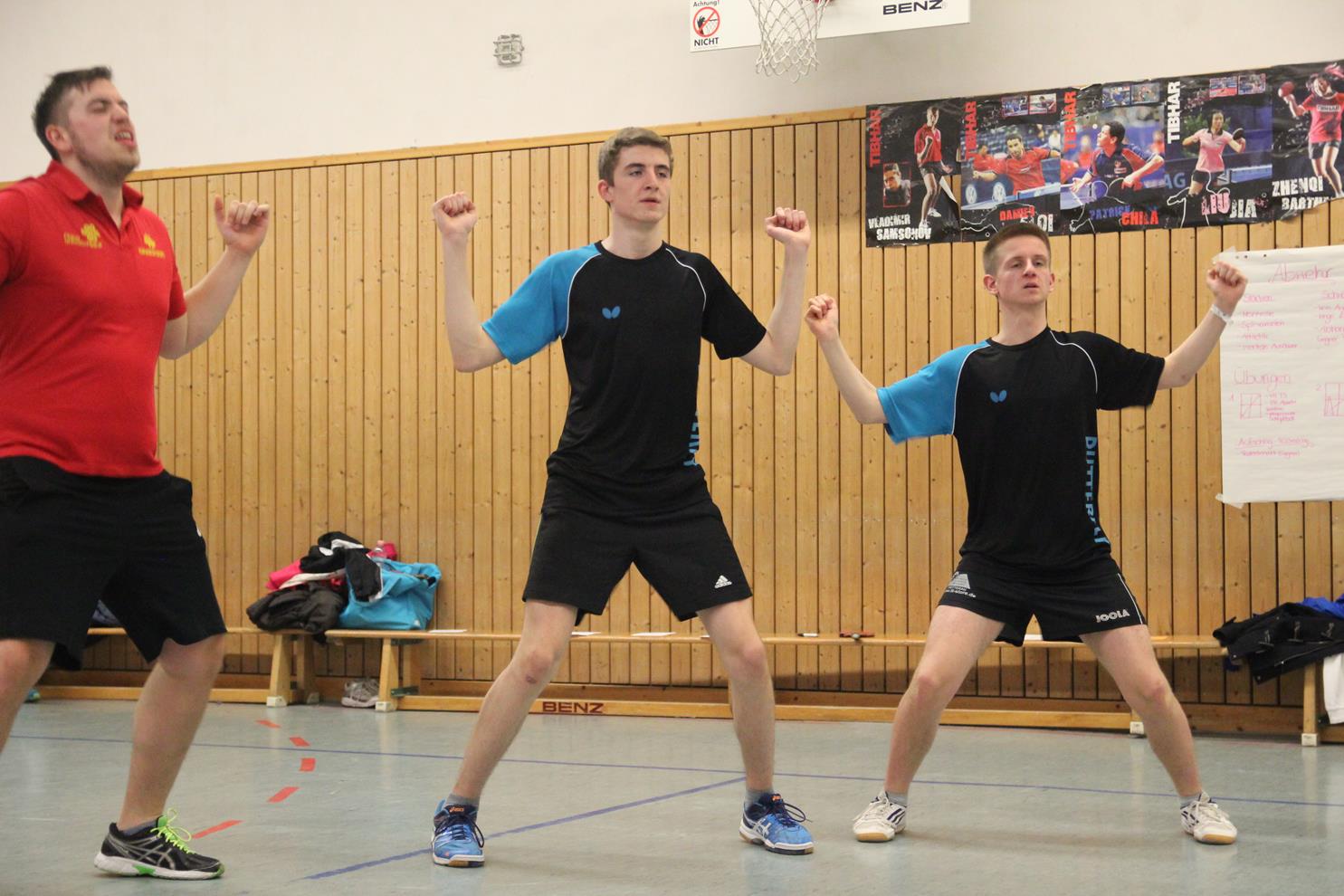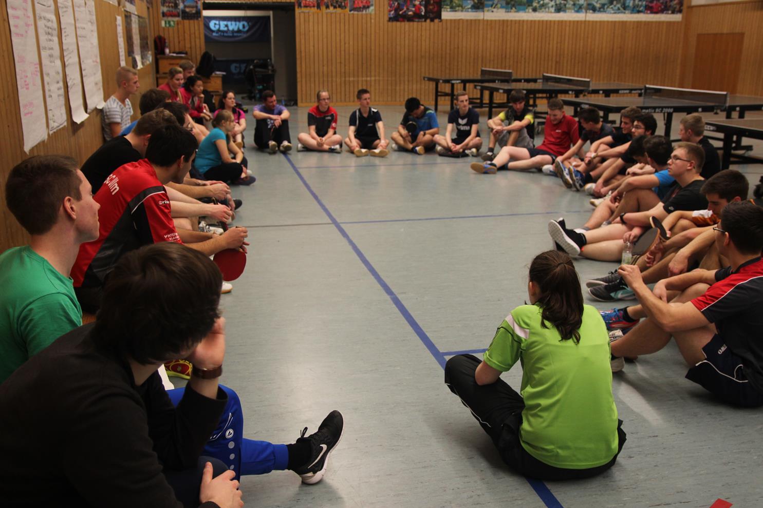 Von Freitagabend bis Sonntagmittag fanden auch dieses Jahr wieder zwei Theorie- und zwei Praxisseminare statt. Los ging es bei A-Lizenz-Trainer Florian Jacobi, der viele Tipps zum Thema Coaching im Gepäck hatte. Die beiden Juniorteamer Franziska und Benjamin teilten sich das zweite Praxisseminar am Samstag. Im ersten Teil war das sprichwörtliche Schweigen Gold: Franziska vermittelte non-verbal, also ohne Sprechen, Aufwärmspiele. Als Ersatz: Handzeichen und Skizzen. Gerade bei der Arbeit mit Flüchtlingen hilft das, die Sprachbarriere zu überwinden. Im zweiten Teil lernten die Engagierten bei Benjamin verschiedenen Wettkampfformen, z.B. das Blitzturnier oder den 59-Punkte-Wettkampf.
