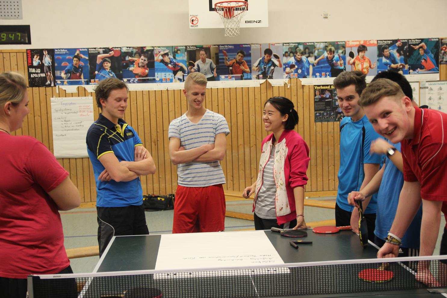 Aber natürlich wurde nicht nur gelernt. Viele Stunden verbrachten die Engagierten in der Max-Schmeling-Halle, um die Tischtennisprofis anzufeuern. Am Samstagabend stand zudem ein gemeinsamer Barbesuch auf dem Programm. Wer davon noch nicht genug hatte, traf sich in der Hotelbar noch zu einer Runde Billard oder „Werwolf“. Auch dieses Jahr waren die Tage des jungen Engagements richtig super. Motivierte und lustige Teilnehmer/innen, gelungene Seminare und eine tolle Stadt – wir freuen uns schon auf die nächsten Tage des jungen Engagements. Dann wohl im Rahmen der WM 2017 in Düsseldorf. Ein besondere Dank gilt der SG Rotation Prenzlauer Berg, die uns ihre Hallen zur Verfügung gestellt haben. Und natürlich den beiden Juniorteamern/innen Franziska und Benjamin, die nicht nur als Dozenten, sondern auch als Betreuer das YS-Team das gesamte Wochenende unterstützt haben.