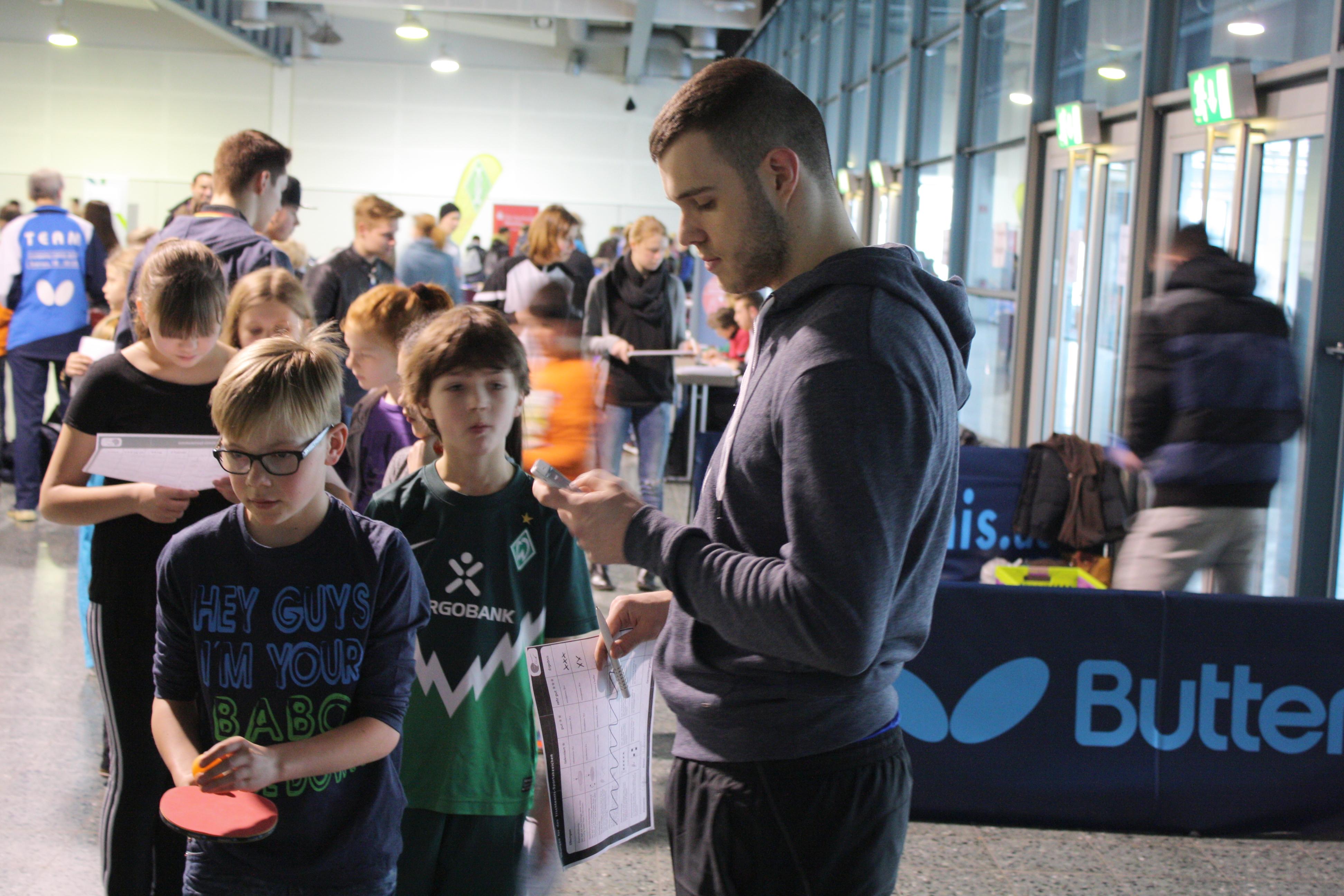 Während der German Open in Bremen fanden von Montag bis Donnerstag auch Bildungstage der Bundesfreiwilligen in der Hansestadt statt. Auf dem Programm stand für die 16 BFDler im Praxisseminar etwa Krafttraining für Kinder- und Jugendliche. Oder das Thema Spielbeobachtung, eine Mischung aus Theorie und Praxis: Morgens lernten sie beim Dozenten Felix Lingenau zunächst die Grundlagen. Am Mittag gings dann gemeinsam in die ÖVB-Arena, um die Profis zu analysieren. Und nachmittags werteten die Freiwilligen ihre Beobachtungen schließlich aus. Am Donnerstag halfen sie beim Tag der Schulen mit. Rund 500 Schüler/innen testeten dort ihr Können im Tischtennis-Fun-Park. Als nächstes geht es für die Bundesfreiwilligen im April zum politischen Bildungsseminar nach Wetzlar.