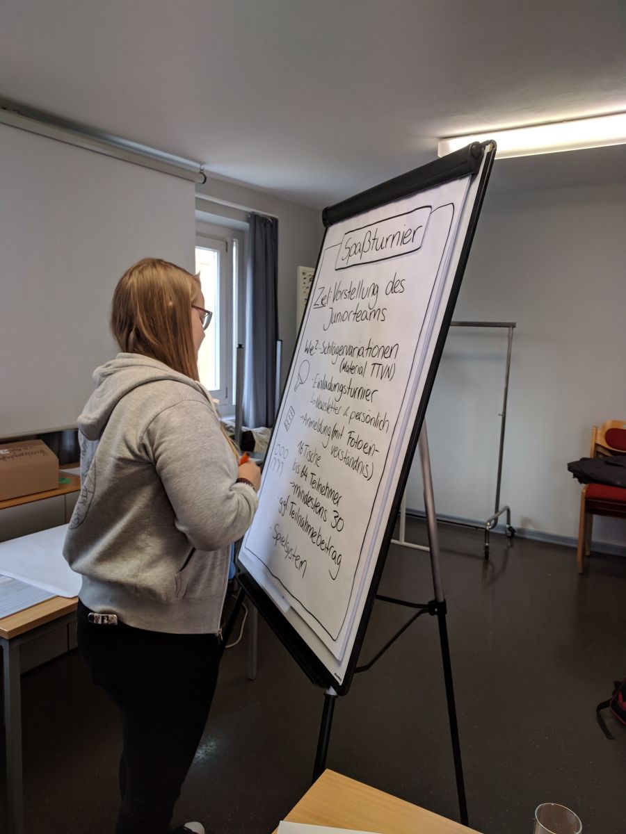 Um sich kennenzulernen veranstalten die Teilnehmer ein „Speed-Dating“, ehe sie den Freitag mit einem Spieleabend schlossen. Am Samstag war Gunnar Bielefeld vom ASC Göttingen zu Gast. Er referierte über das Thema Kommunikation und Kommunizieren. Auf der Agenda standen außerdem Visualisierungstechniken. Juniorteamerin Anna zeigte, wie man aus einem grauen Flipchart. eine abwechslungsreiche, ansehnliche und dennoch übersichtliche Flipchart machen kann. Im dritten Teil stand das Projektmanagement im Mittelpunkt, das für den Auf- und Ausbau der Juniorteams wichtig ist. Deswegen entwickelten alle anwesenden Juniorteams Projekte, die sie im Jahr 2018 planen. Das TTVN-Juniorteam will ein Spaßturnier ausrichten, um sich selbst vorzustellen. Die Hessen wollen eine Jugendfreizeit mit 25 Teilnehmern veranstalten, der TTVWH einen Tag der offenen Tür.