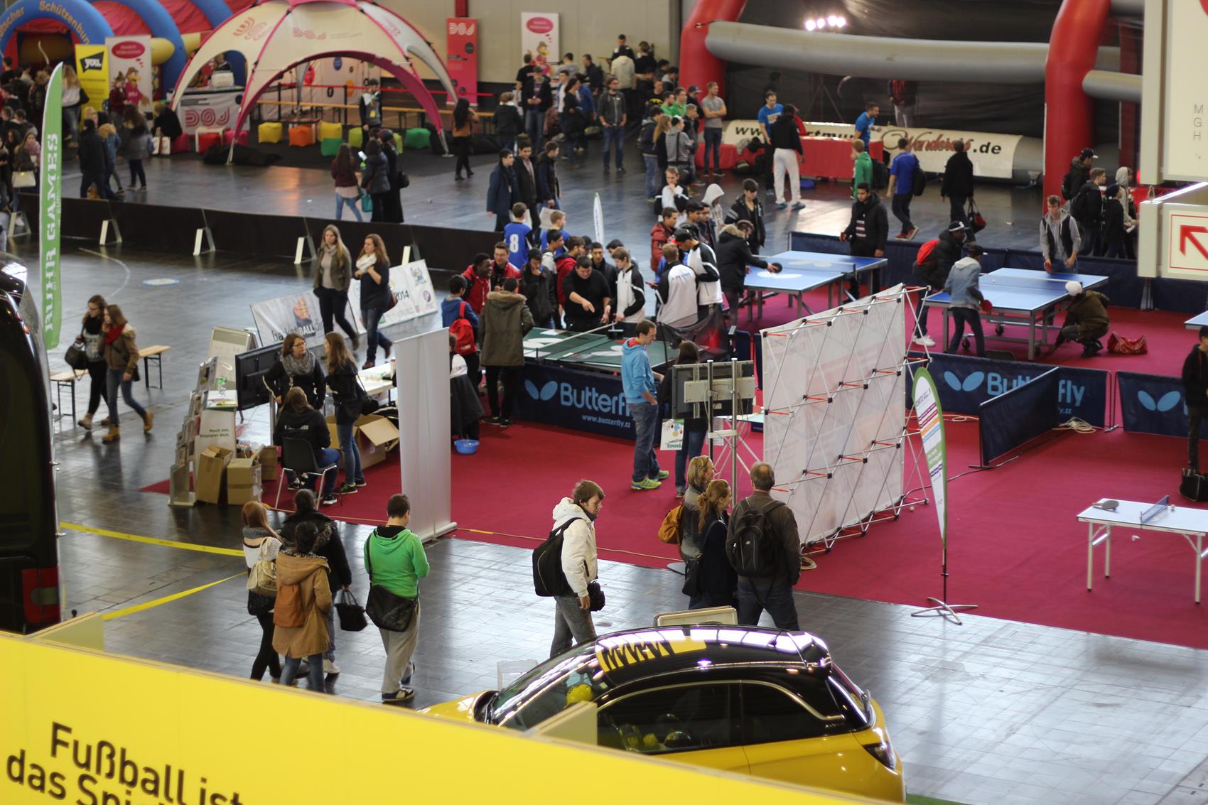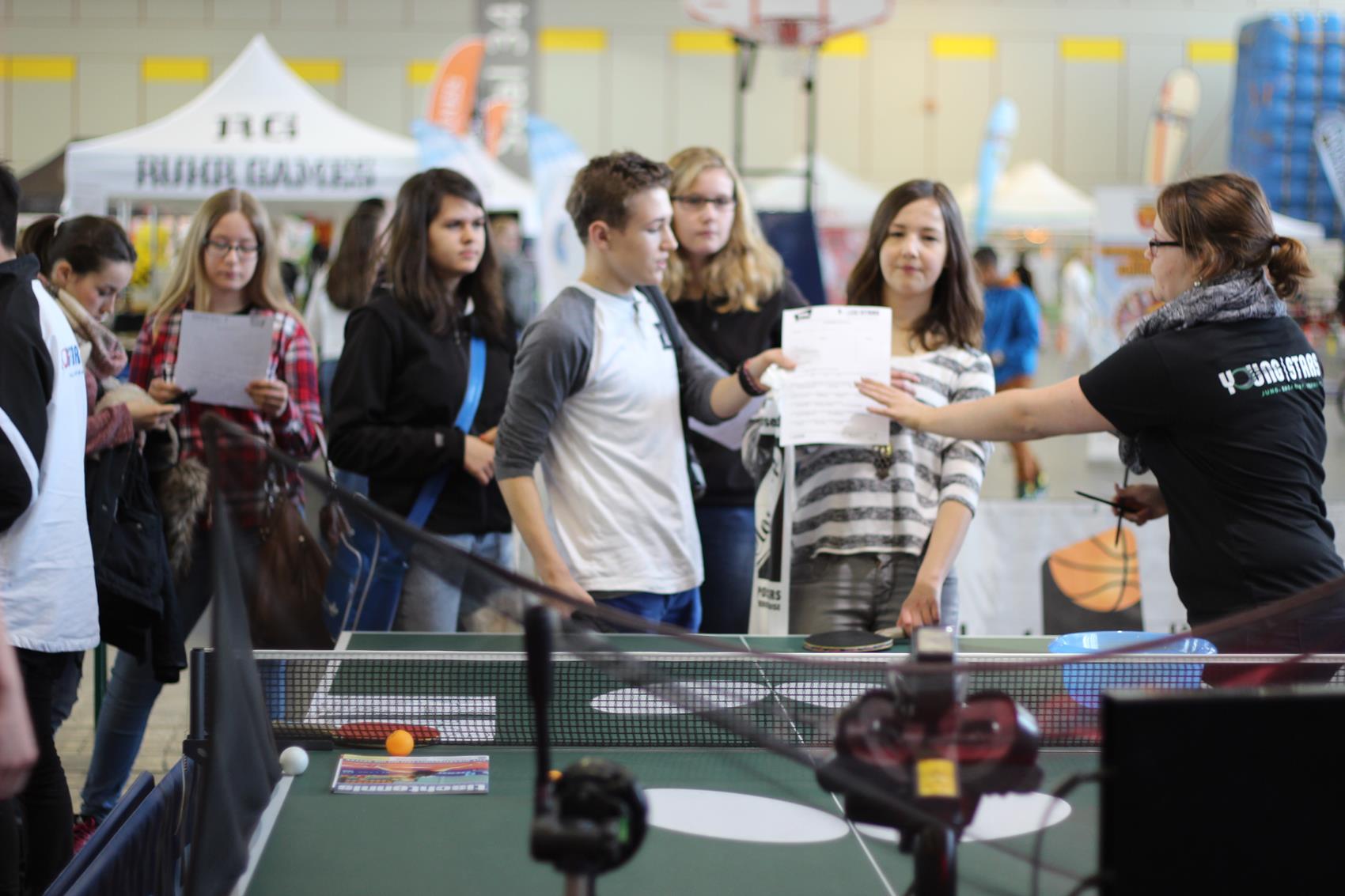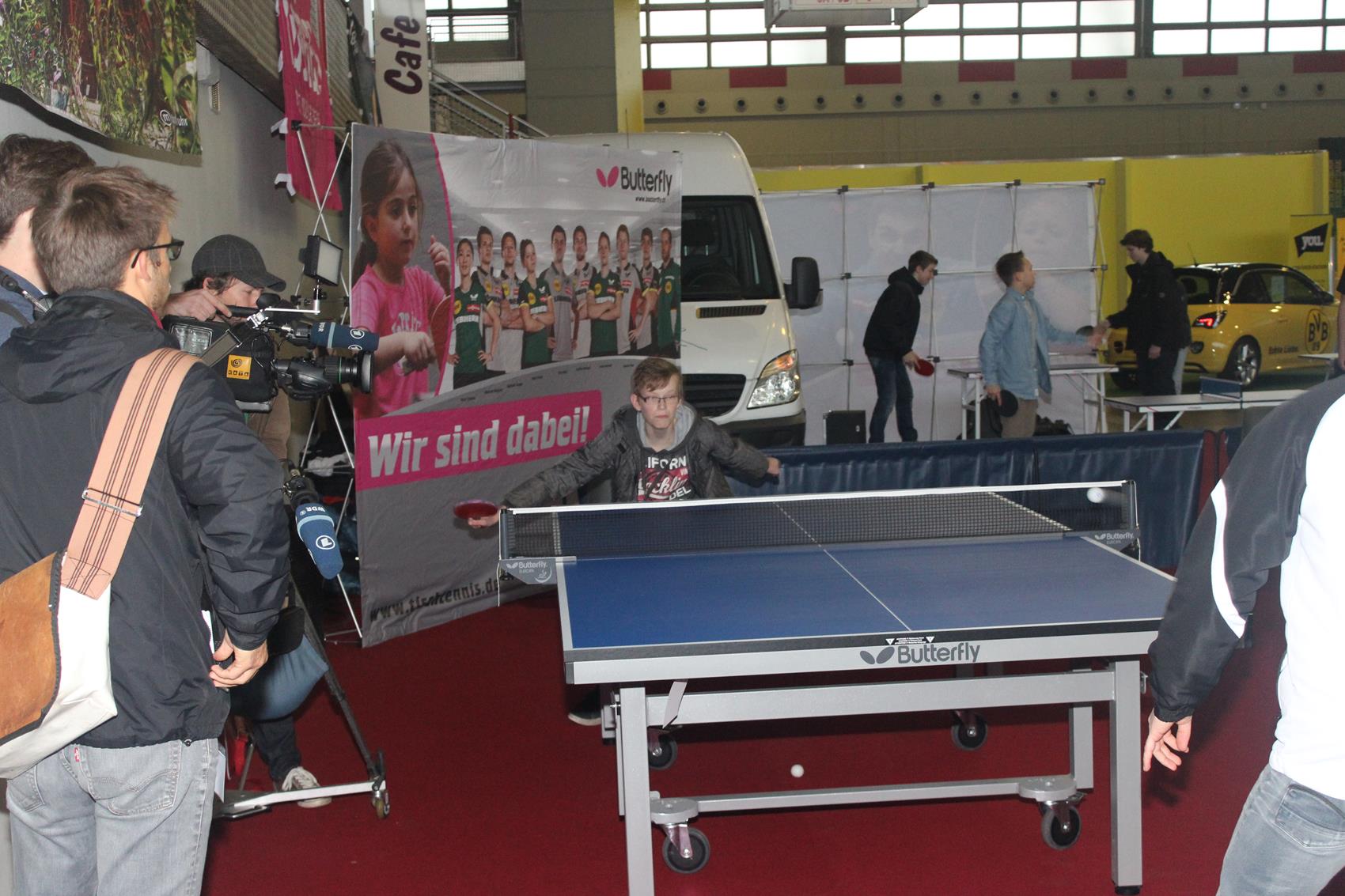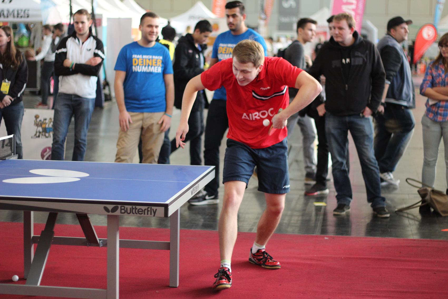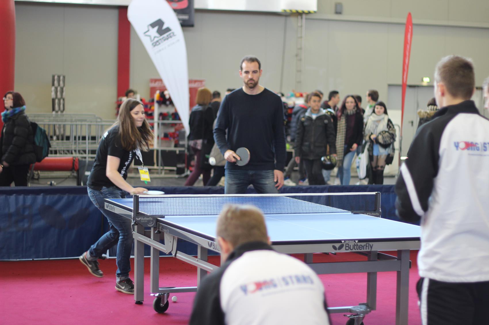 Mehr als zehn Tische zum freien Spielen, ein Parcours mit Geschwindigkeitsmessung oder einem Duell gegen die Wii, Mini-Turniere, Schaukampf und vieles mehr – am Stand zwanzig in Halle vier war eigentlich für jeden Jugendlichen etwas dabei. Kein Wunder, dass viele sich ein Schläger oder eine Pfanne nahmen, und ein paar Minuten Tischtennis spielten – auch absolute Promis wie Ex-Nationalspieler Christoph Metzelder oder dem BVB-Maskottchen Emma. Ihr wahres Tischtennis-Können konnten die in der Regel Hobby-Spieler im Parcours unter Beweis stellen. Wer sich bei der Geschwindigkeitsmessung, beim Zielschießen, am Mini-Tisch, an der Wii und beim TT-Quiz beweisen konnte, wurde auch mit einem Preis belohnt.