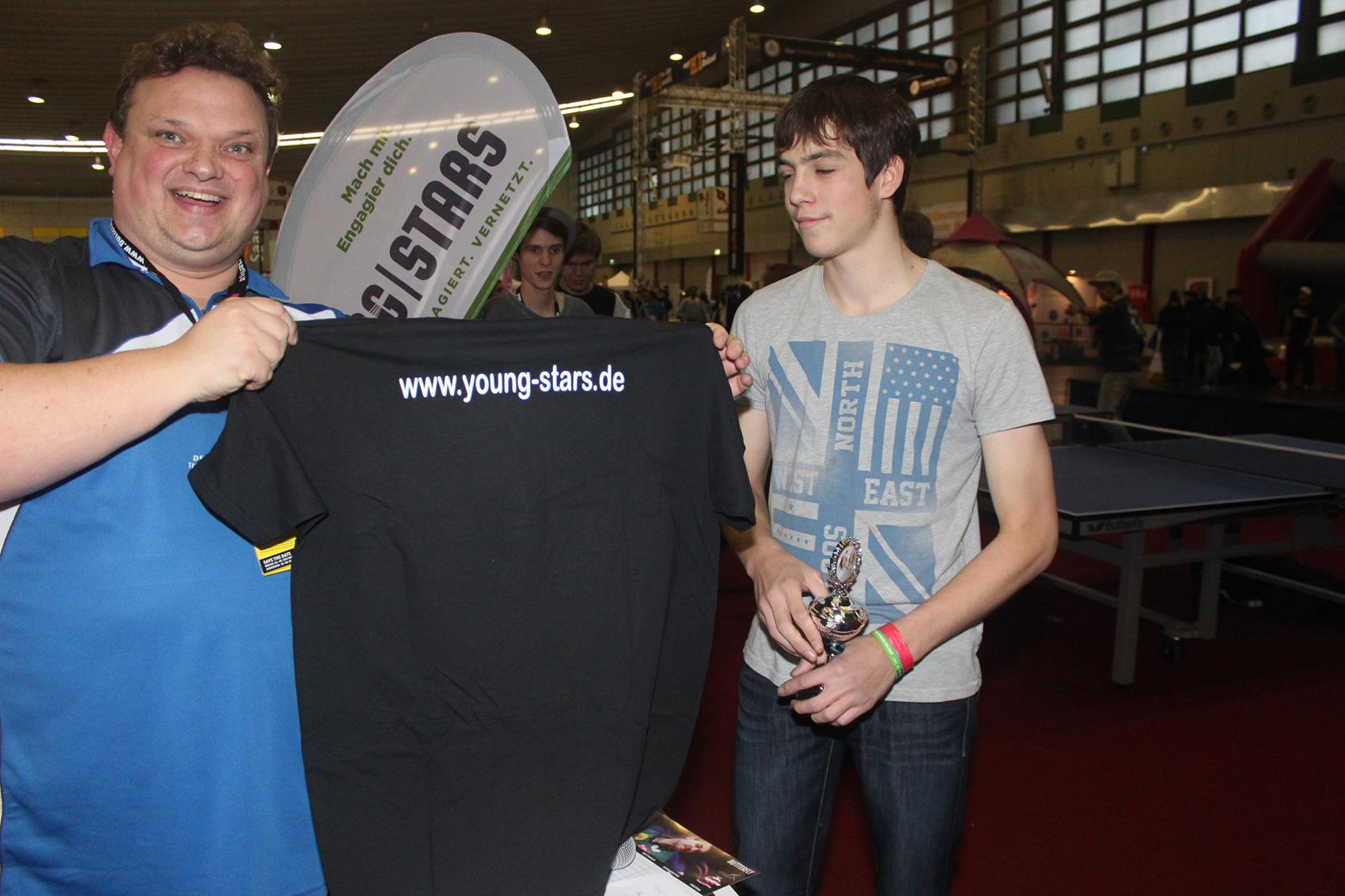 Spitzentischtennis zeigte Nationalspieler Benedikt Duda, der für einen kleinen Schaukampf mit dem Bundesfreiwilligen Nils Röttgen extra am Samstag aus Düsseldorf anreiste. Unterstützt wurde das DTTJ-Team auf der YOU vom Juniorteam und von Bundesfreiwilligen. Das Fazit der Veranstaltung war insgesamt positiv: „Wir hatten immer viele Besucher an unserem Stand, die auch richtig Spaß beim Tischtennis ‚zocken‘ hatten. Und das trotz der sehr vielen anderen attraktiven und spannenden Ausstellern“, resümiert Benedikt Probst, Kommunikationsreferent für die Initiative Young Stars. Außerdem müsse man, so Probst, den Juniorteamer/innen und den Bundesfreiwilligen für ihren Einsatz an den drei Tagen ein großes Lob aussprechen und ihnen danken.