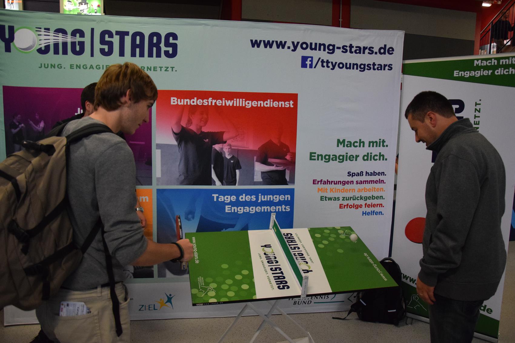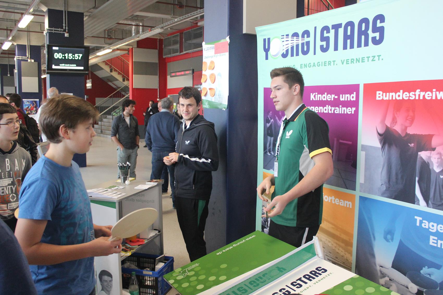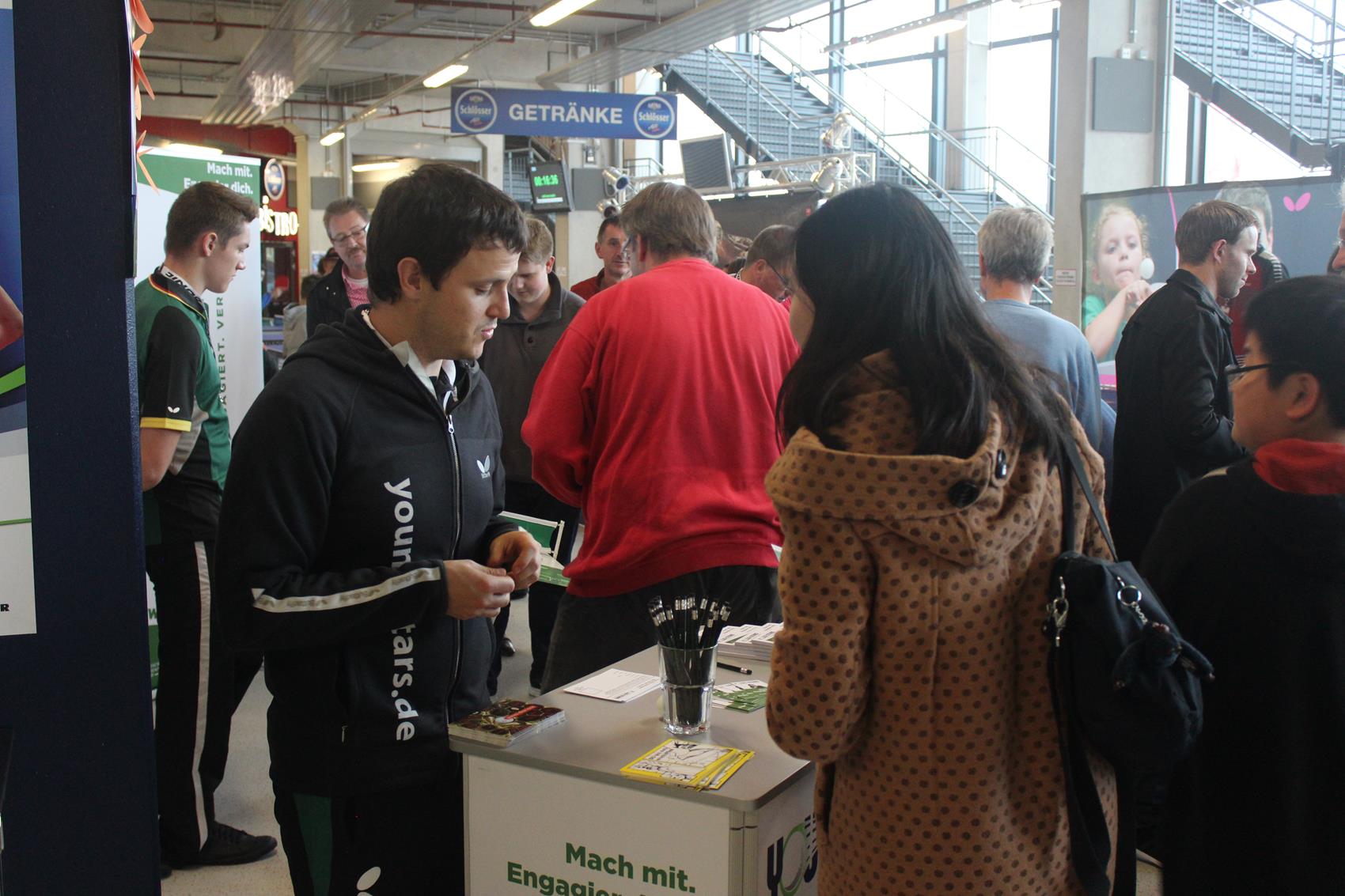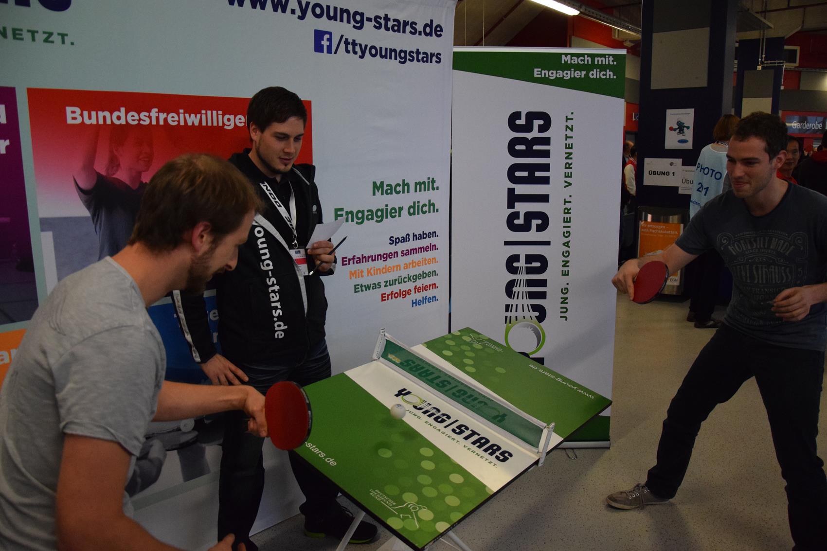 Der Men’s World Cup 2014 in Düsseldorf ist vorbei. Rund 10.000 Tischtennis-Fans waren an den drei Tagen im ISS Dome zu Gast. Viele davon besuchten auch unseren Young Stars-Infostand und nahmen an unserem kleinen Gewinnspiel teil. Mit 317 Ballkontakten ging der Sieg am „schiefen Tisch“ am Samstag nach Frankreich . Die Gewinner am Sonntag kamen vom TTC Seligenstadt aus Hessen. Der zwölfjährige Robert und Andreas setzten sich deutlich mit 274 Ballkontakten durch. Wer bei unserem Gewinnspiel ein Wochenende bei den German Open 2015 inkl. Tickets & Übernachtung gewonnen hat, erfahrt ihr in den nächsten Wochen. Fotos vom Wochenende findet ihr in der Galerie. Vielen Dank an alle, die uns besucht und mitgemacht haben.